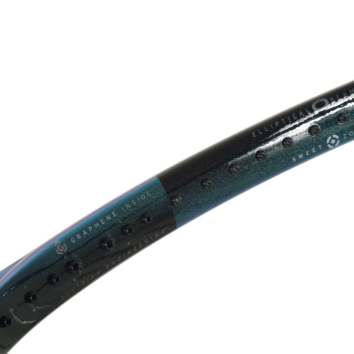 همچنین، فناوری Graphene Inside با قرارگیری گرافن در موقعیتهای ۳، ۹ و ۱۲ ساعت، فریم را تقویت کرده و پایداری بیشتری ایجاد میکند، در نتیجه انتقال بهینه انرژی از راکت به توپ در هنگام ضربه را تضمین میکند.