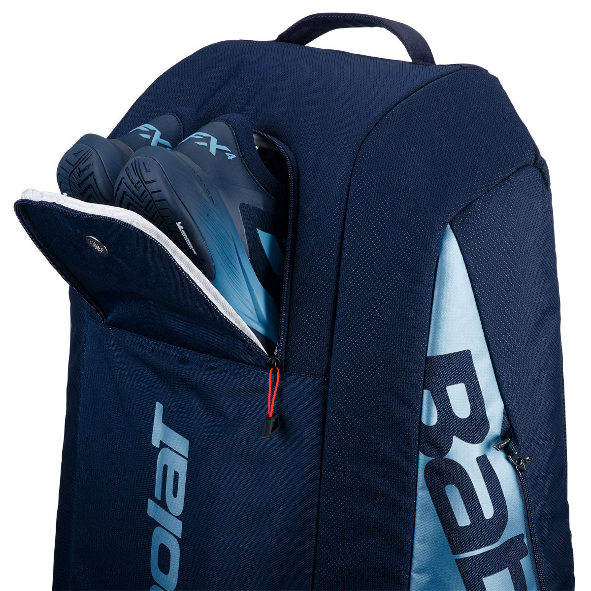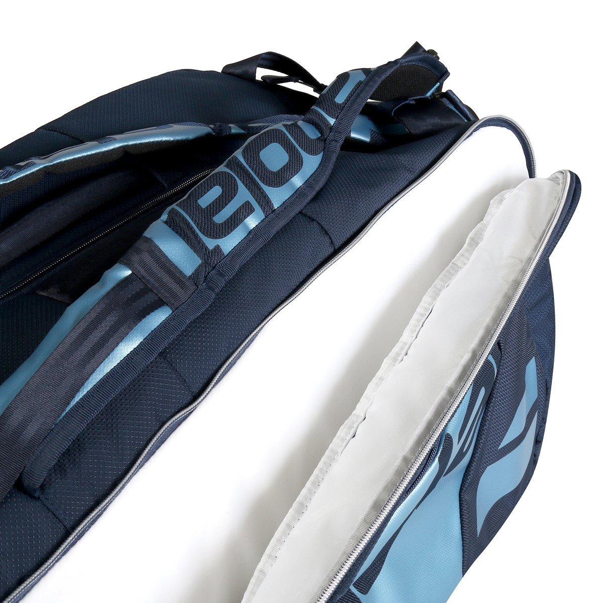 کیف تنیس Babolat Pure Drive 12 انتخابی ایده‌آل برای حمل تمام تجهیزات تنیس شماست، چرا که با بهره‌گیری از محفظه‌های متنوع و جادار، فضای کافی برای نگهداری تمام لوازم موردنیاز را فراهم می‌کند. طراحی آن با رنگ‌های آبی و سرمه‌ای کاملاً با راکت‌های سری Pure Drive هماهنگ است و ظاهری حرفه‌ای و منسجم به شما می‌بخشد.